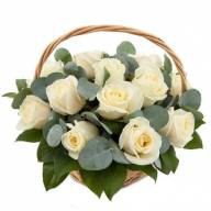 Стильная корзина из 11 нежно-белых роз будет превосходным подарком для любого человека, особенно цветам обрадуется женщина. Букет уместен на свадьбе или на другом важном торжестве. Также его дарят возлюбленным, так как белые розы отлично передают нежность и чистоту человека, отношений и намерений. Стильное украшение цветочной композиции, где к розам добавлены эвкалипт и салал, убедят получателя в вашем непревзойденном вкусе. Легкий запах придется по вкусу дорогому человеку.
